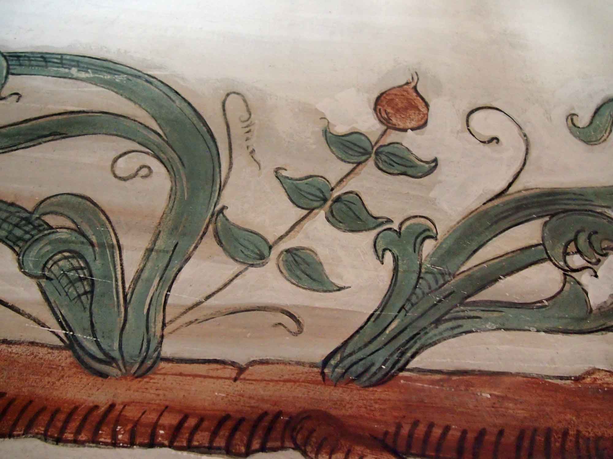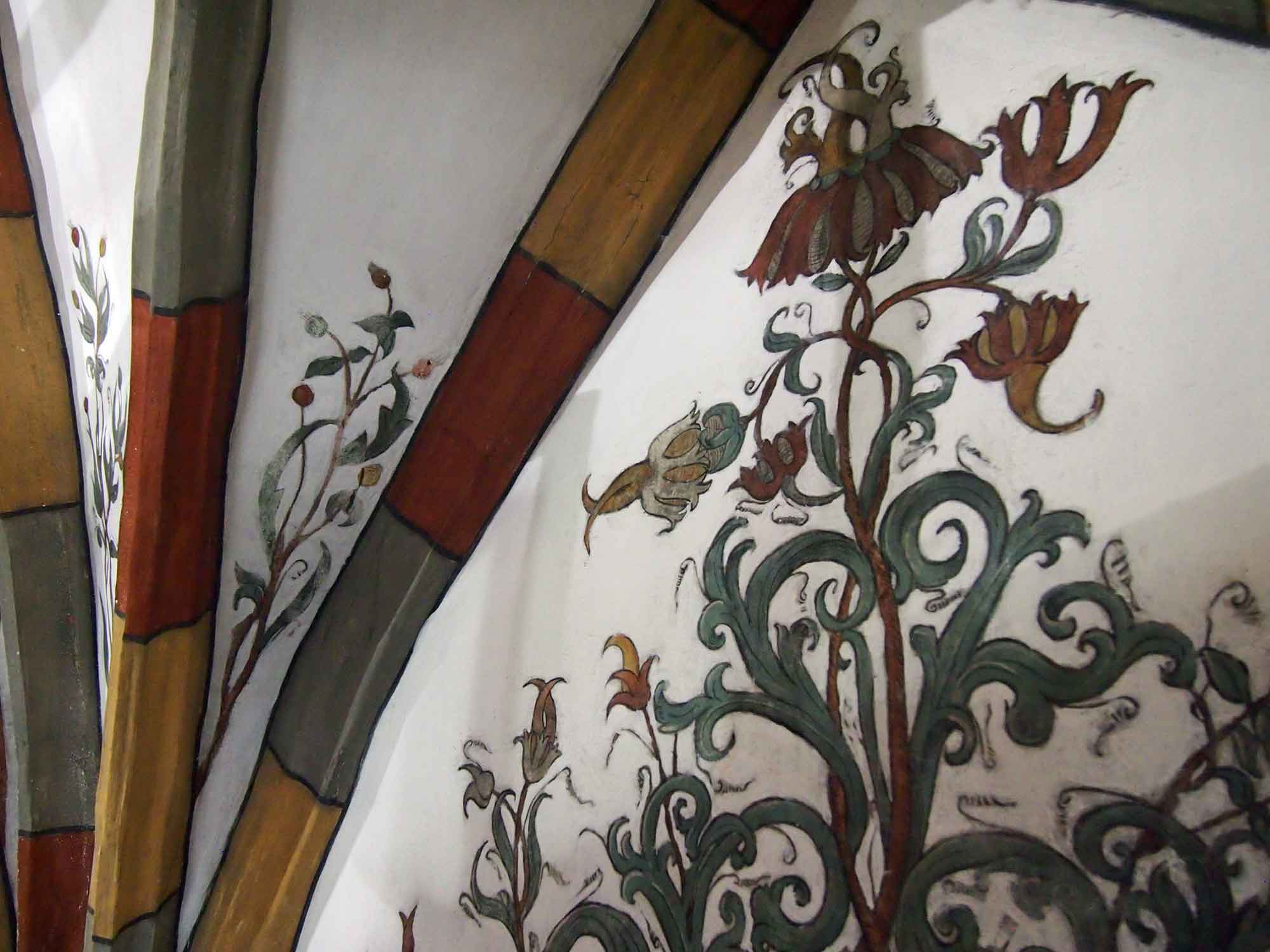 Nachdem die Wände gereinigt sind, kommt der Staub in den Zwischenräumen um das Rankenwerk zutage, der bei der Renovierung 1985 nicht entfernt wurde, statt dessen hat man ihn fixiert. Damit lässt er sich nicht mehr herunterwaschen und es bleibt ein hässlicher Grauschleier stehen.